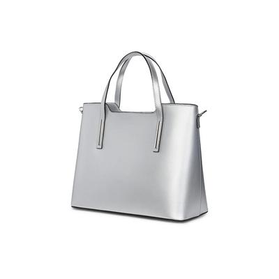 Дамска чанта Ligia, естествена кожа, сребриста, 27x37x15 см, две отделения myOwn