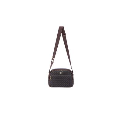 Чанта през рамо от еко кожа с шарка и лого на презрамката, Черен/Кафяв BRICIOLE