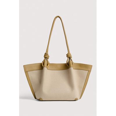 Шопинг чанта Finn с лен и кожа, Каки/Крем COCCINELLE