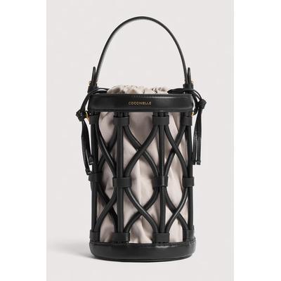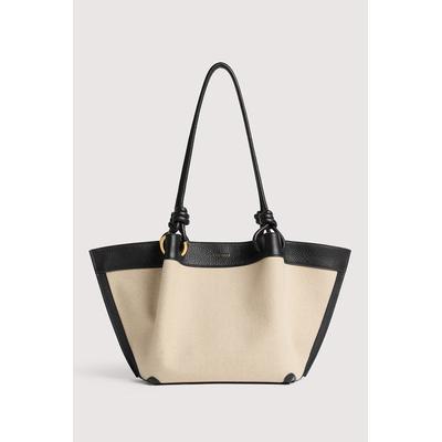 Шопинг чанта Finn с лен и кожа, Черен/Крем COCCINELLE