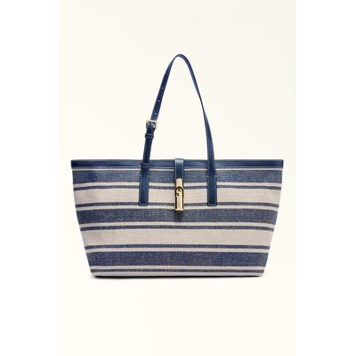 Раирана чанта за рамо Debby, Кралско Синьо/Мръснобял Furla