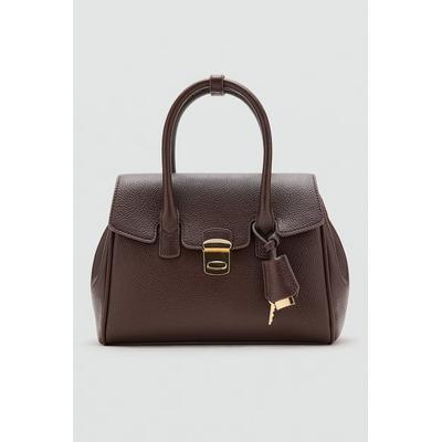 Чанта за рамо от еко кожа с капаче, Тъмнокафяв Mango