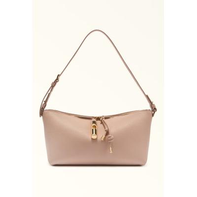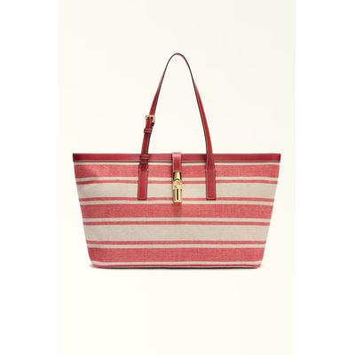 Раирана чанта за рамо Debby, Мръснобял/Ягодово червено Furla