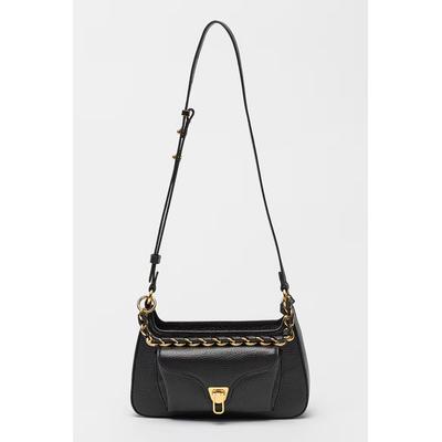 Кожена чанта през рамо Beat Generatio с отделяща се презрамка тип верижка, Черен COCCINELLE