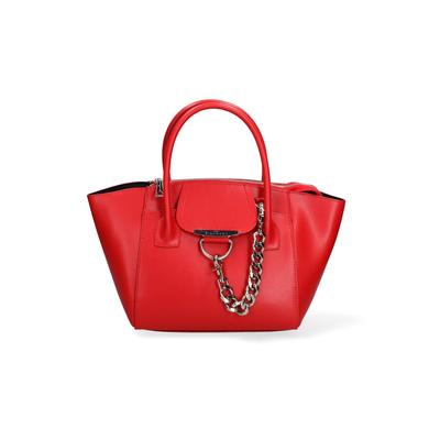 Чанта от кожа с презрамка тип верижка, Червен, Сребрист John Richmond