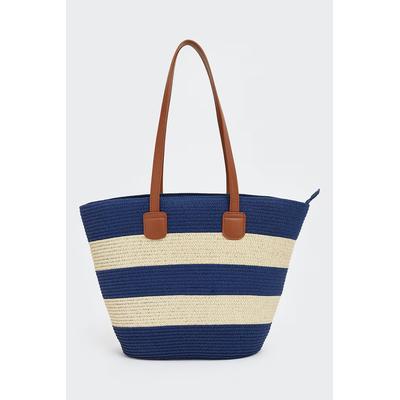 Раирана сламена чанта, Светло бежово/Тъмносин LC WAIKIKI