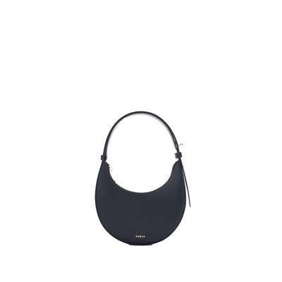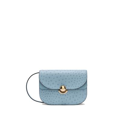 Кожена чанта през рамо Celeste Pro с десен, Светлосин Furla