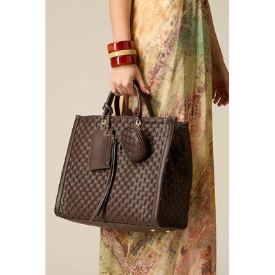 Сплетена ръчна чанта от еко кожа с отделящи се несесери, Тъмнокафяв Oltre