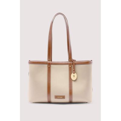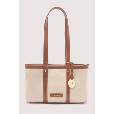 Текстилна чанта през рамо Elba с кожа, Кафяв/Тъмнобежово Trussardi