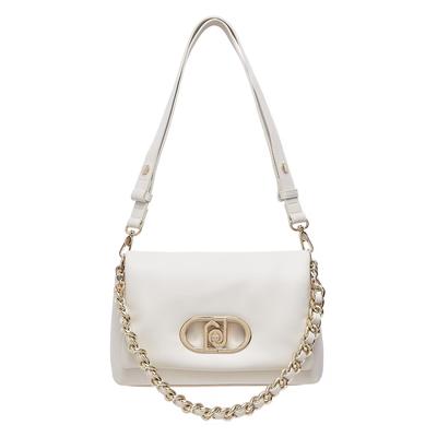 Кожена чанта през рамо с капаче, Мръснобял Baldinini
