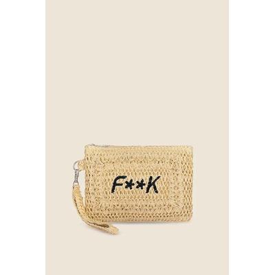 Cosmetic Beach Bag With Embroidered Logo, Бежов f**k