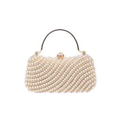 Малка чантичка със синтетични перли, Светло бежово Carolina di Rosa