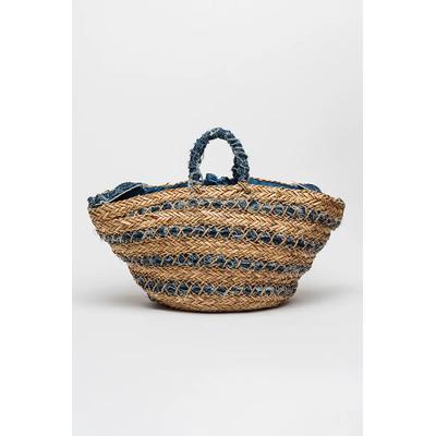 Сламена чанта с деним, Светло бежово/Тъмносин Francesca Rossi