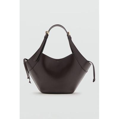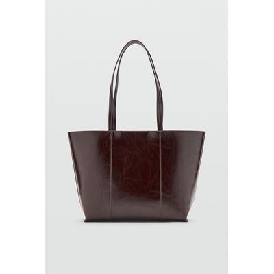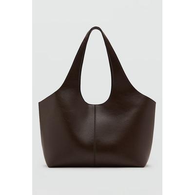 Шопинг чанта от еко кожа с регулируема дръжка, Тъмнокафяв Mango