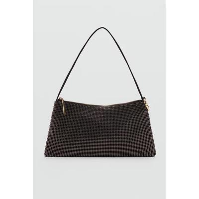 Чанта за рамо с пайети, Тъмнокафяв/Тъмносребрист Mango