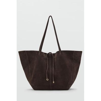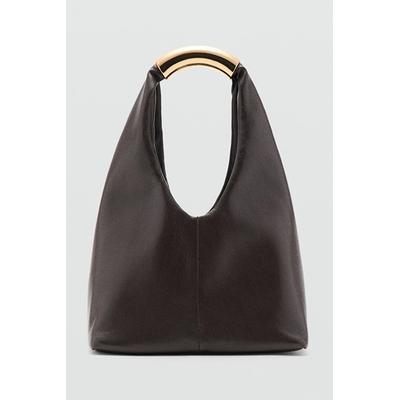 Велурена чанта за рамо с изчистен десен, Кафяв Mango
