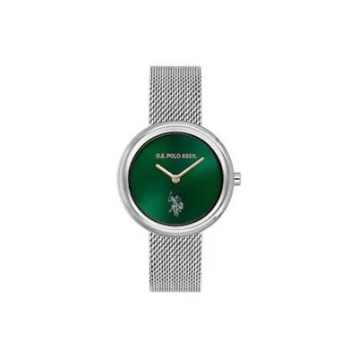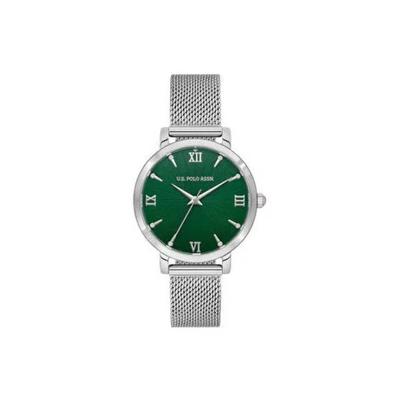 Дамски часовник USPA2080-06, сребрист, метална каишка, зелен циферблат, 35мм U.S. Polo Assn.