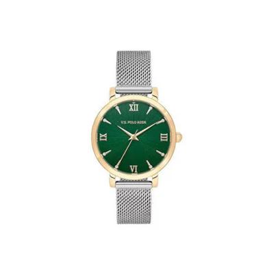 Дамски часовник USPA2094-05, златист, метална каишка, зелен циферблат, 35 мм, Silver U.S. Polo Assn.