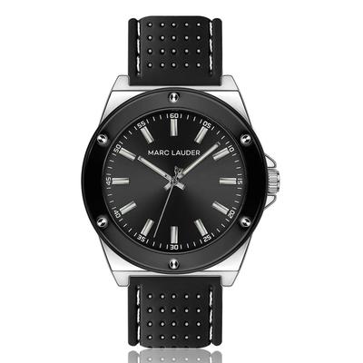 Часовник с хронограф и кожена каишка, Черен Marc Malone