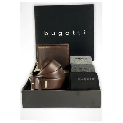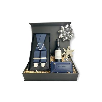 Мъжки подаръчен комплект, 421277, Blue Box, презрамки, портфейл от естествена кожа, син, Син Bugatti