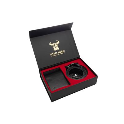 Комплект портфейл и колан, мъжки, от естествена кожа, Черен, Muselles Toro Nero