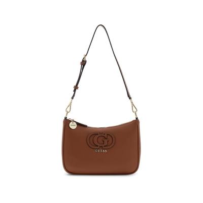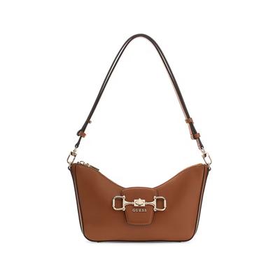Чанта за рамо с цип и регулираща се презрамка, Канелено кафяво GUESS