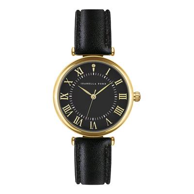 Часовник с кожена каишка, Златист/Черен Isabella Ford