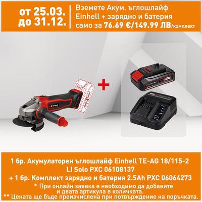 Акумулаторен ъглошлайф Einhell TE-AG 18/115-2 LI Solo PXC