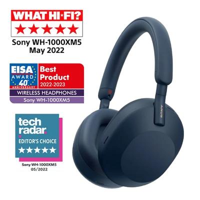 Безжични слушалки с микрофон Sony - WH-1000XM5, Hard Case, ANC, сини