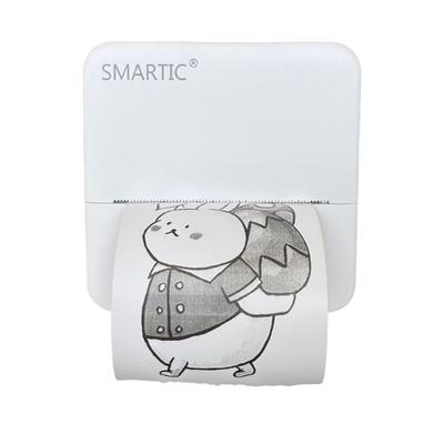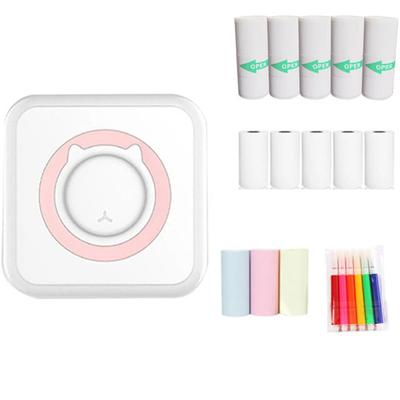 Комплект мини термопринтер, Rqiurpn, с 13 ролки хартия 57x25mm и комплект цветни химикалки Bluetooth, съвместим с iOS/Android, печат от приложение, преносим, бял/розов