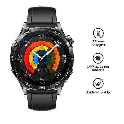 Смарт часовник HUAWEI WATCH GT 5 BLACK VLI-B19F Black Fluoroelastomer Strap 46 MM, GPS, ПУЛСОМЕР, SPO2