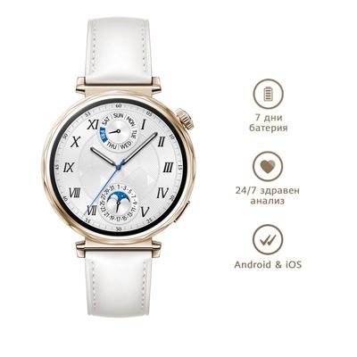 Смарт часовник HUAWEI WATCH GT 5 WHITE JNA-B19L White Composite Leather Strap 41 MM, GPS, ПУЛСОМЕР, SPO2