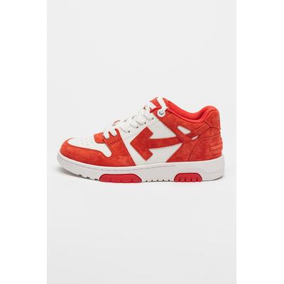 Кожени спортни обувки с велур, Червен/Бял OFF-WHITE
